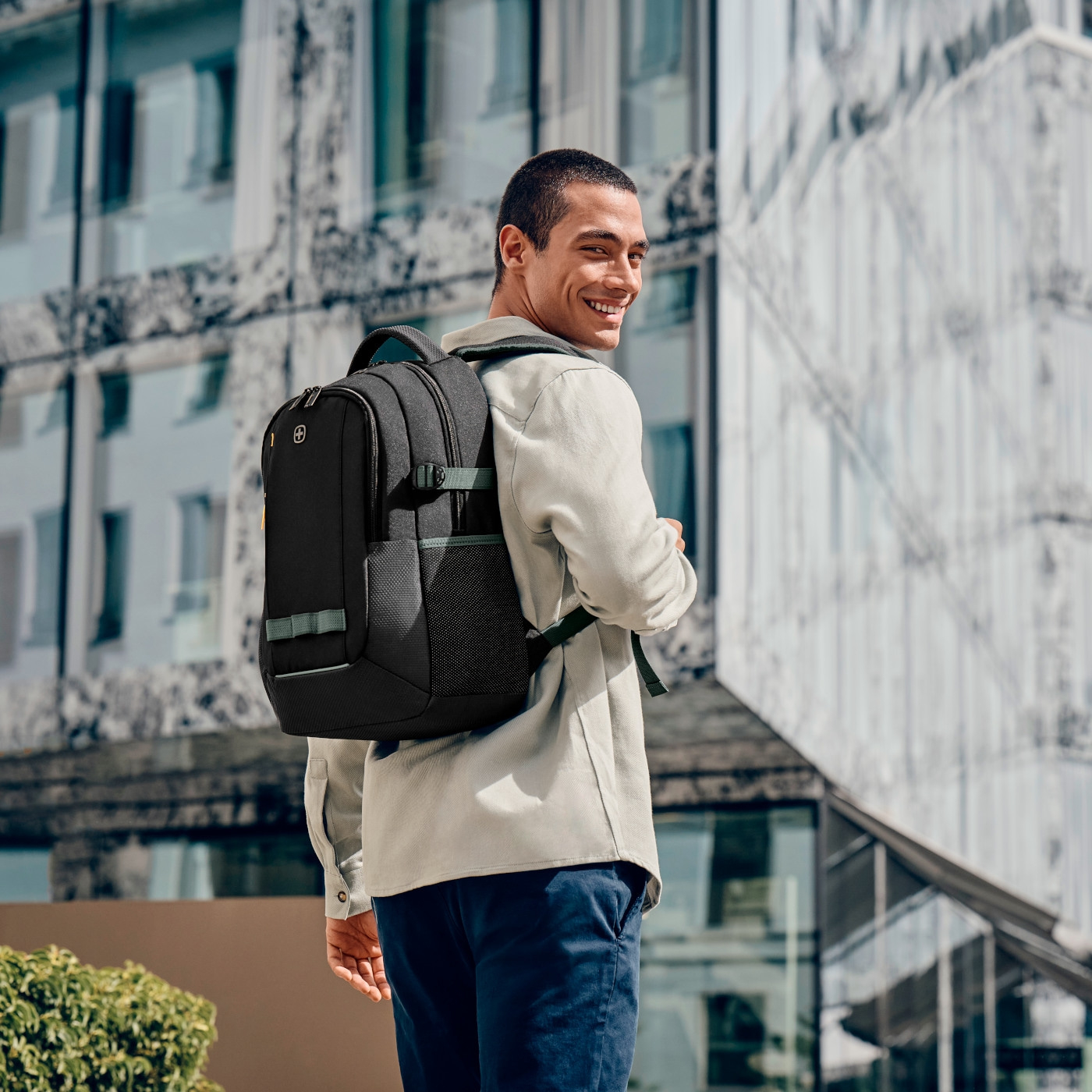 May we introduce: the Ryde, our super-compact rucksack that makes commuting child's play. It effortlessly masters every urban challenge and gives you a mobile office at your fingertips - or rather on your back. So you can multitask successfully on the go. Every Ryde backpack has a recycled outer material made from around twelve recycled PET bottles, so you can do something good for the environment. An accessory with brains.