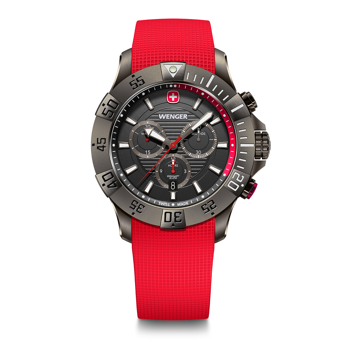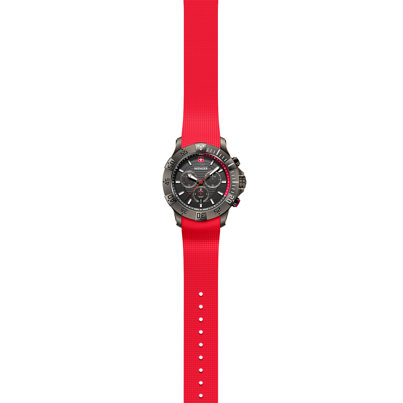 Item no01.0643.128Dial colorRed/blackCase colorBlack IceStrap colorRedBezel colorBlack IceCase materialStainless steelStrap materialSiliconeWater resistance200 mDiameter43 mmStrap closureRegular buckleCrystal materialMineralFeaturesScrew-down crown, Chronograph, Date function, Protected crown, Illuminated pointer, Luminescent handsMovement caliberRonda 5030.DMovementAnalogue quartz movementCollectionSeaforceStrap closure materialRustproof stainless steelCrystal specificationSapphire coatingLug width22 mmCase finishPolished-brushedWeight103 gNet height11.55 mmPower reserveNoBattery371Second time zoneNoDial constructionIndices usedBezel rotationDial finishSemi-mattPower gaugeNoCountdown timerNoBezel materialStainless steelStrap closure finishBrushedCase back materialStainless steelCase back closureScrewed case backCountry of OriginSwitzerland