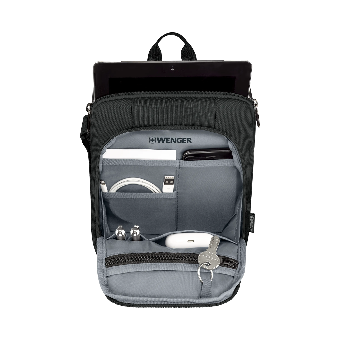 - Organiser for important accessories for neatly storing cables, chargers and business cards