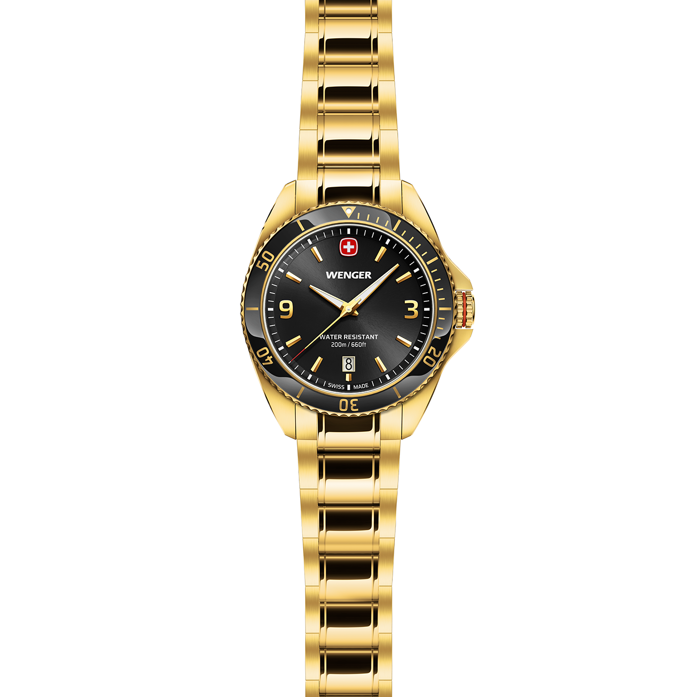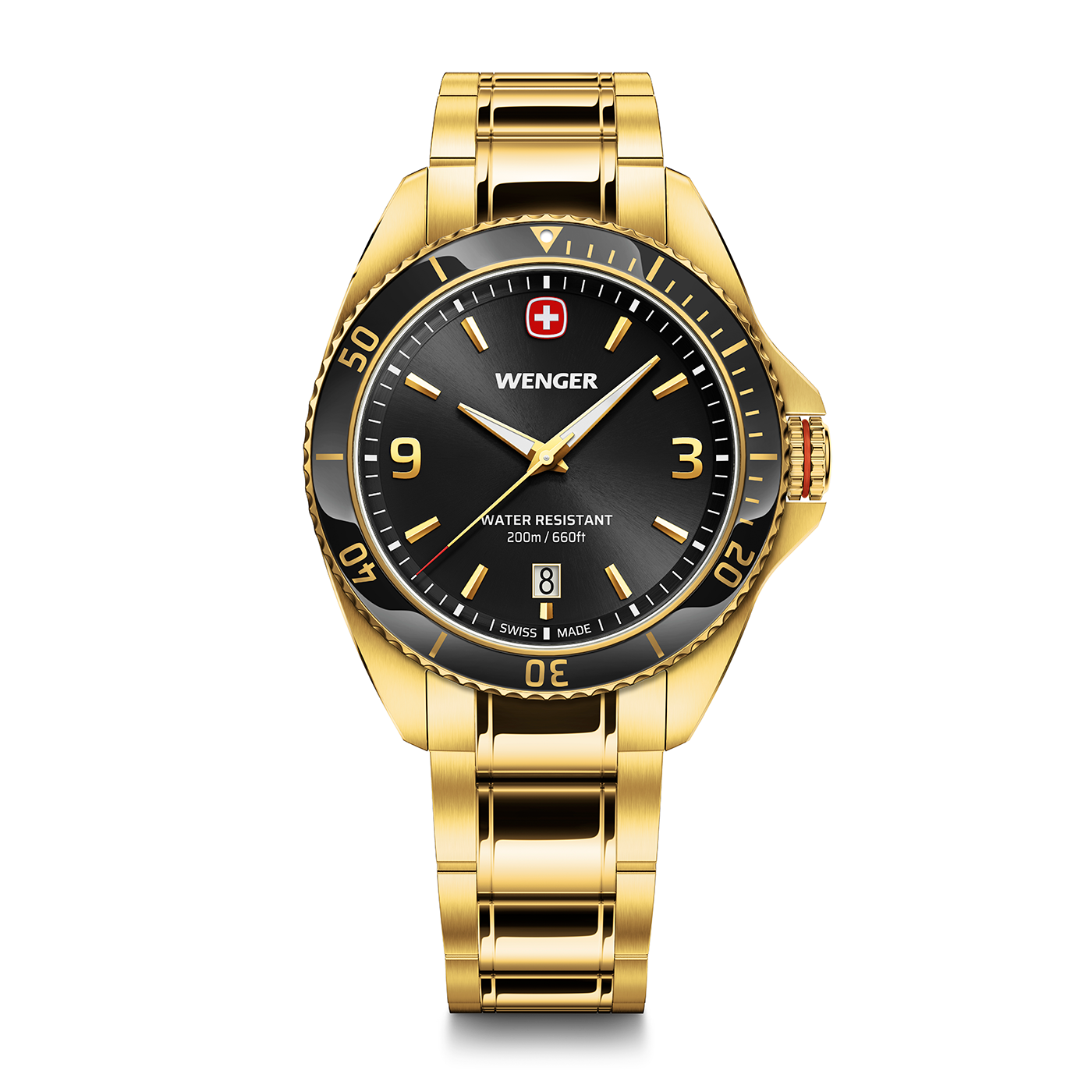 The Executive exudes timeless elegance. Whether for everyday wear or special occasions - this watch fits seamlessly into your lifestyle and adds that certain something to any outfit. The Swiss-made quartz watch is a tribute to Wenger's long tradition. It features a carefully considered colour scheme that harmonises the case, the metallised mineral insert on the bezel and the dial. Speaking of the dial: it is equipped with sophisticated applied indexes and luminescent areas so that you can read the time even at night and in poor lighting conditions. With its metallic finish and the polished, bevelled details on the case, the Executive embodies functionality and style.