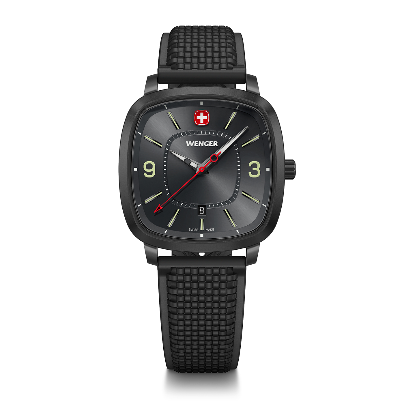 Introducing the elegant, stylish Vintage Sport. Our innovative watch case mimics the super elliptical shape of the Wenger logo and is made in Switzerland for absolute precision. Because we have absolute confidence in its longevity, the watch is covered by a 3-year warranty. Special details include a classic sun-brushed dial, a date window at 6 o'clock and silver-coloured indexes with large numerals and Super-LumiNova® so that you can easily read the time even in the dark. The red and white logo at 12 o'clock provides an extra dose of style. There is a choice of bracelets made partly from recycled PET and stainless steel bracelets with a sliding buckle that can be individually adjusted. And with our quick-change system, you can swap the straps in no time at all. The Vintage Sport is the perfect choice for sporty city dwellers.